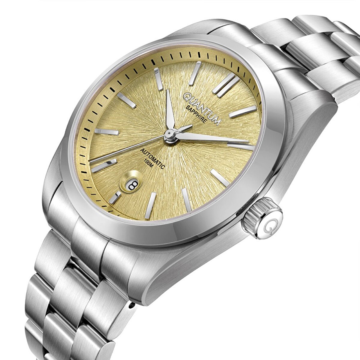 Quantum QMG1228.310, klasik çizgileri modern detaylarla buluşturan otomatik bir modeldir. Krem tonlu iç kadranı, çelik kasası ve zarif tasarım diliyle şıklığı ve teknik mükemmeliyeti aynı anda sunar.