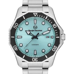 Şıklığı enerjik bir dokunuşla buluşturan Sergio Tacchini S.ST.1.10422-5, modern tasarımıyla stiline karakter kazandırır. Göz alıcı turkuaz kadranı, zarif gümüş kasa rengi ile birleşerek hem günlük kullanımda hem de spor-şık kombinlerde fark yaratır. 43,5 mm kasa çapı sayesinde bilekte dolgun ve güçlü bir duruş sergiler.