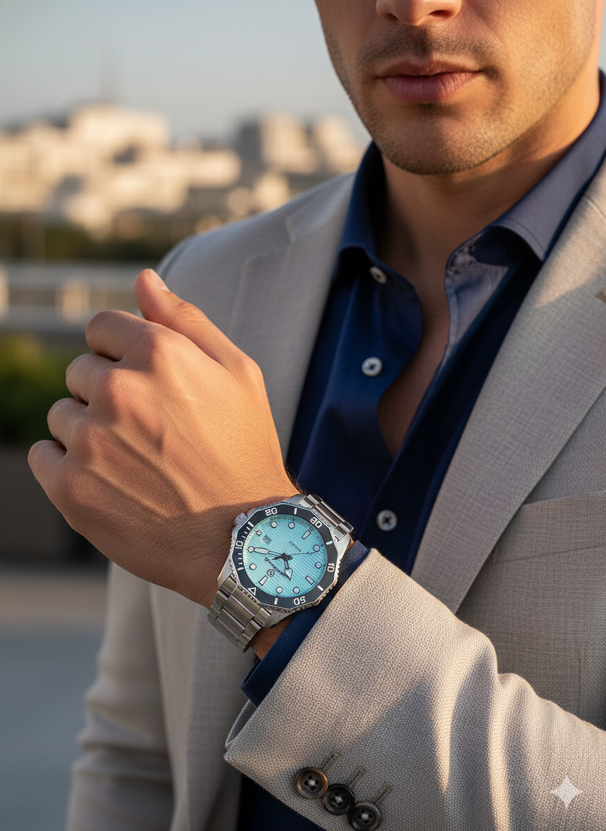 Turkuaz kadran ile modern ve dikkat çekici görünüm