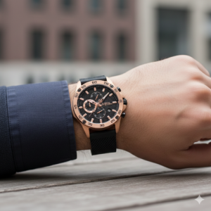 Siyah kadran ile net okunabilirlik ve maskülen duruş