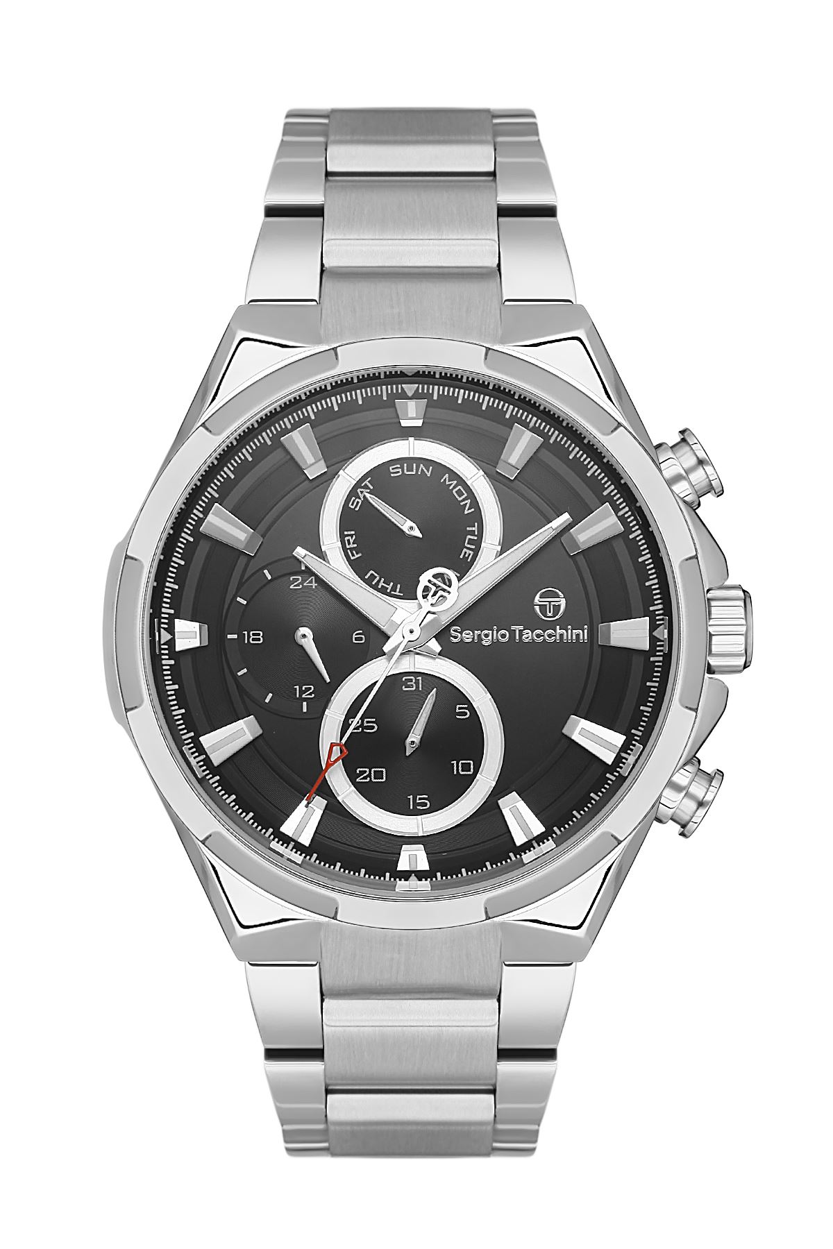 Modern çizgiler, zamansız şıklık! Sergio Tacchini ST.1.10395-2, metal renk çelik kasa ve kordonu ile güçlü bir duruş sergilerken, SİYAH kadranı sayesinde sıcak ve sofistike bir hava sunar. 45 mm geniş kasa çapı, bilekte dikkat çekici ve prestijli bir görünüm oluşturur.