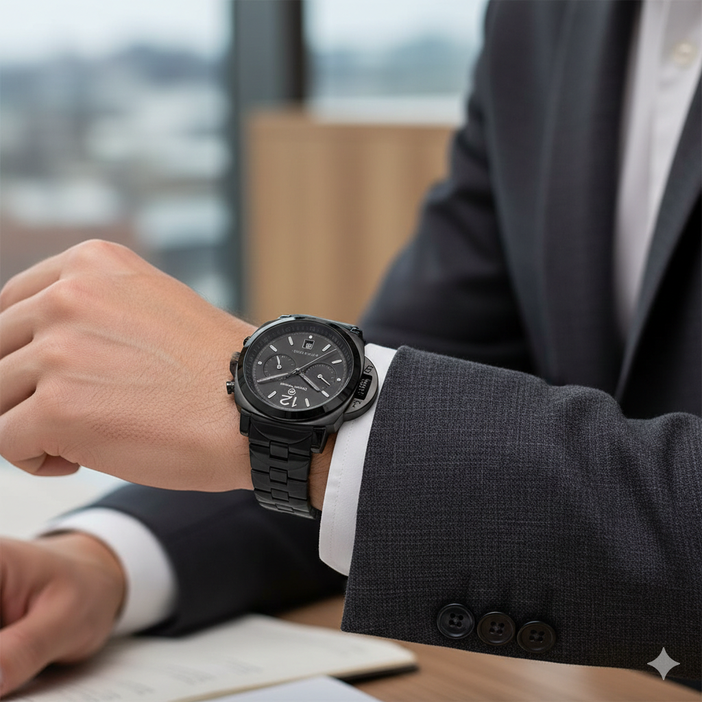 • Siyah kasa + siyah kadran ile güçlü ve modern görünüm