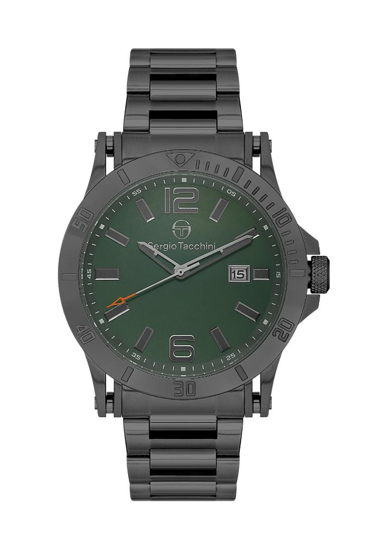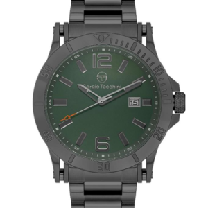 Güçlü duruşu ve modern renk uyumuyla öne çıkan Sergio Tacchini ST.1.10426-4, füme çelik kasası ve bileziğiyle bilekte prestijli bir görünüm sunar. Saatin en dikkat çekici detayı ise yeşil kadranı… Füme kasa ile birleşen bu özel kadran rengi, hem sportif hem de lüks bir hava katar.