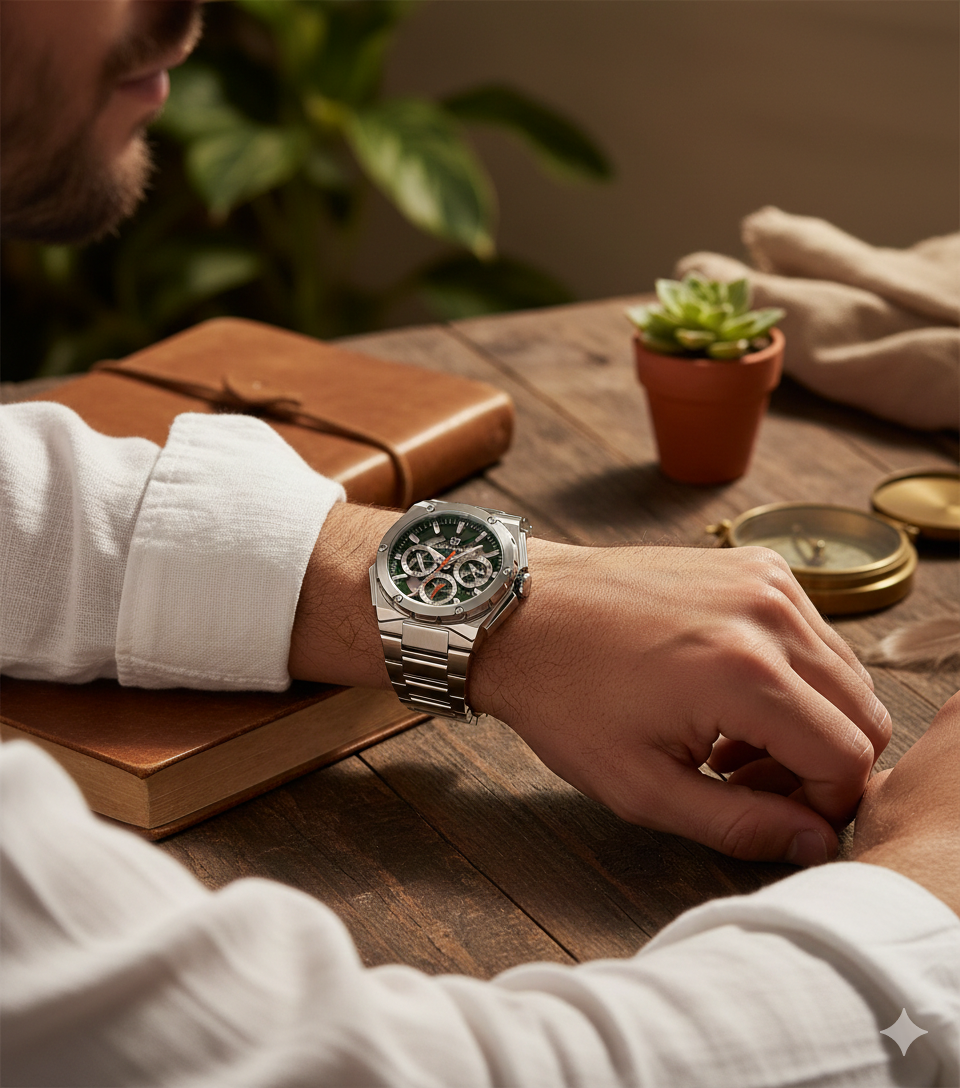 • Yeşil kadran – dikkat çekici ve modern görünüm