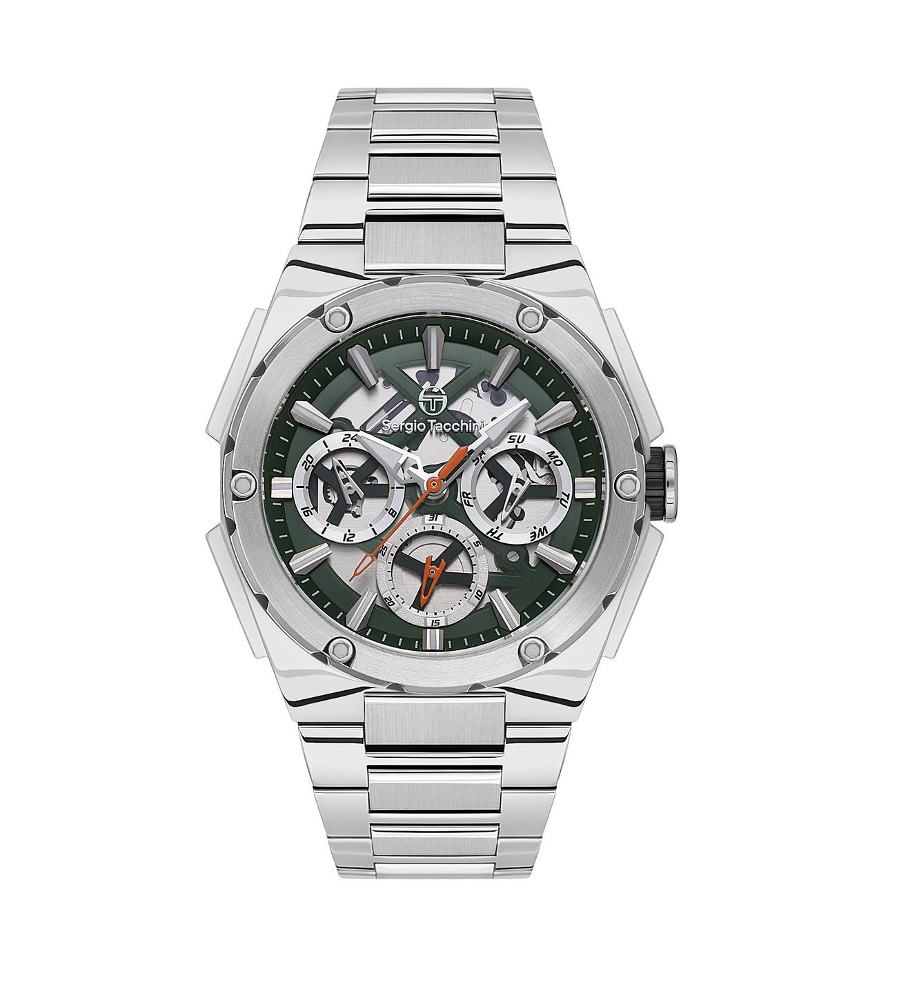 Günlük şıklığı güçlü bir duruşla tamamlayan Sergio Tacchini ST.1.10437-3, gümüş çelik kasa ve kordonu ile zamansız bir stil sunarken; yeşil kadranı sayesinde farkını ilk bakışta ortaya koyar. Hem modern hem de klasik çizgileri bir araya getiren bu model, casual kombinlerinize premium bir dokunuş katar.