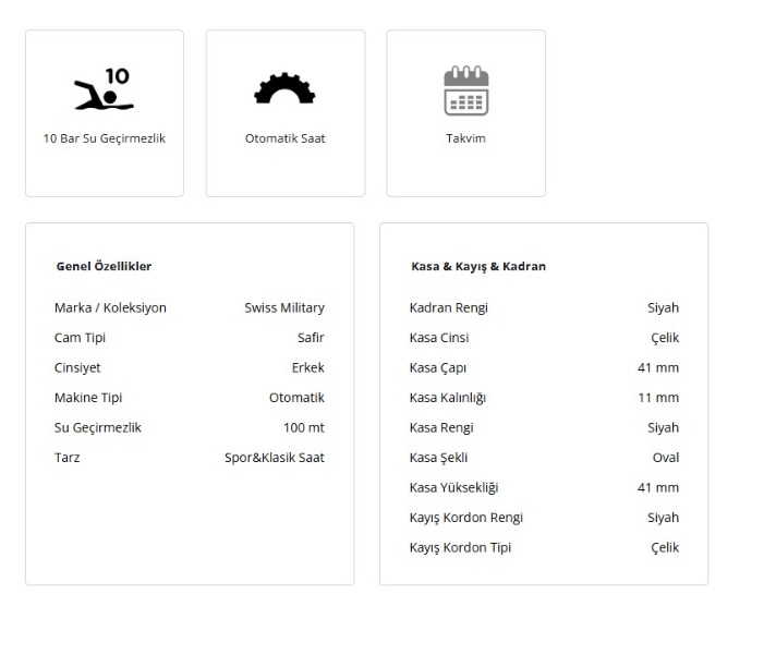 Swiss Military SMWGL0005530 Kol Saati Özellikleri