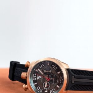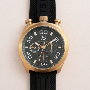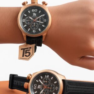 İkonik tasarımı ve modern detaylarıyla öne çıkan T5 H3619G-02, rose çelik kasasıyla güçlü ve prestijli bir görünüm sunar. Siyah silikon kordon, gün boyu konfor sağlarken sportif şıklığı tamamlar. Maskülen duruşu vurgulayan 44 mm kasa çapı, bilekte net ve iddialı bir etki oluşturur.