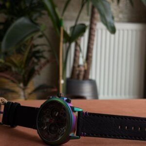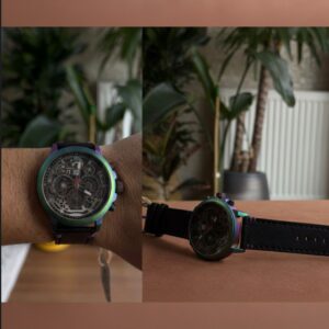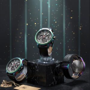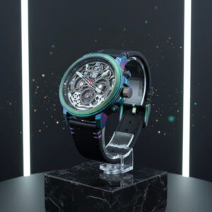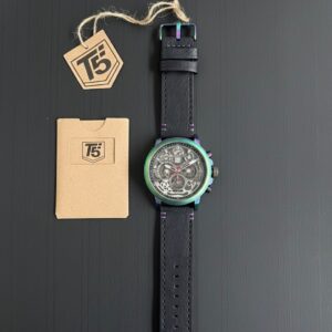 Farklı tarzı ile öne çıkan T5 Erkek Kol Saati, rainbow efektli metal kasası ve siyah deri kordonu ile modern ve sıra dışı bir şıklık sunar. Şeffaf skeleton kadran tasarımı, saatin mekanizmasını ön plana çıkararak dikkat çekici bir görünüm kazandırır. Hem günlük kullanıma hem de özel davetlere uygun, koleksiyonluk bir saat.