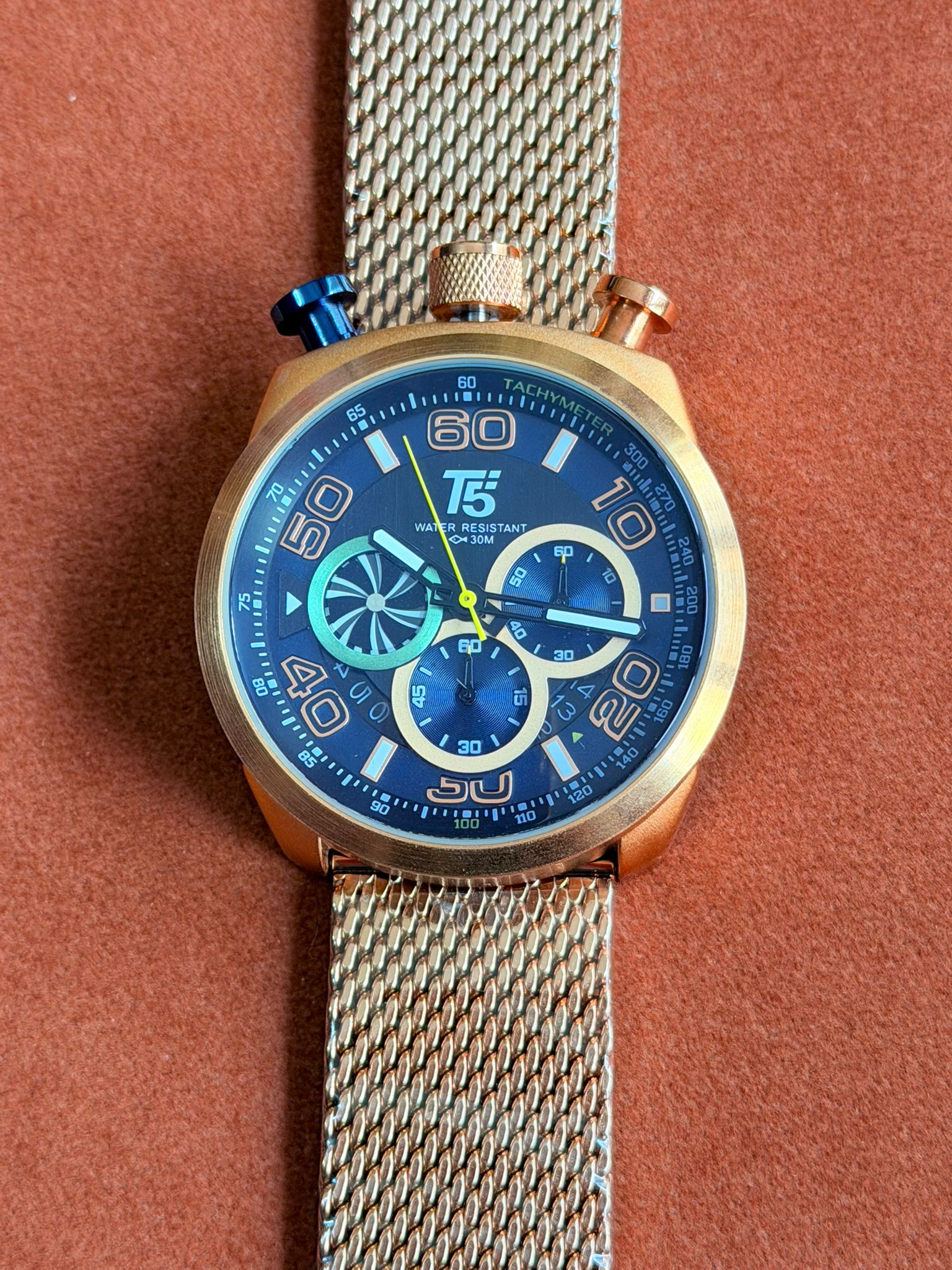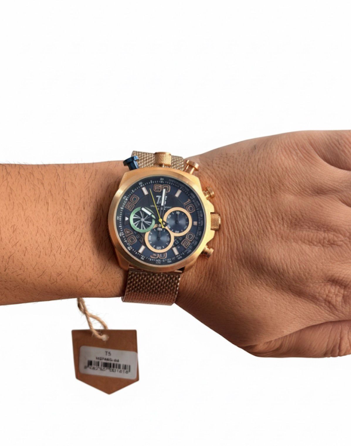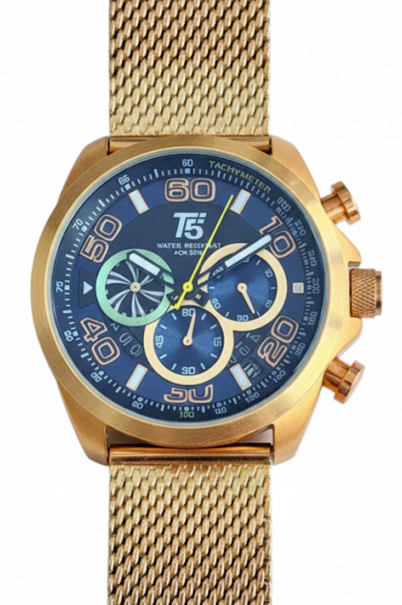 Zamansız gold rengi, kronograf fonksiyonları ve güçlü tasarımıyla T5 H3748G-04, hem günlük kombinlerde hem de özel anlarda stilinizi tamamlayacak şık bir tercihtir.