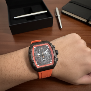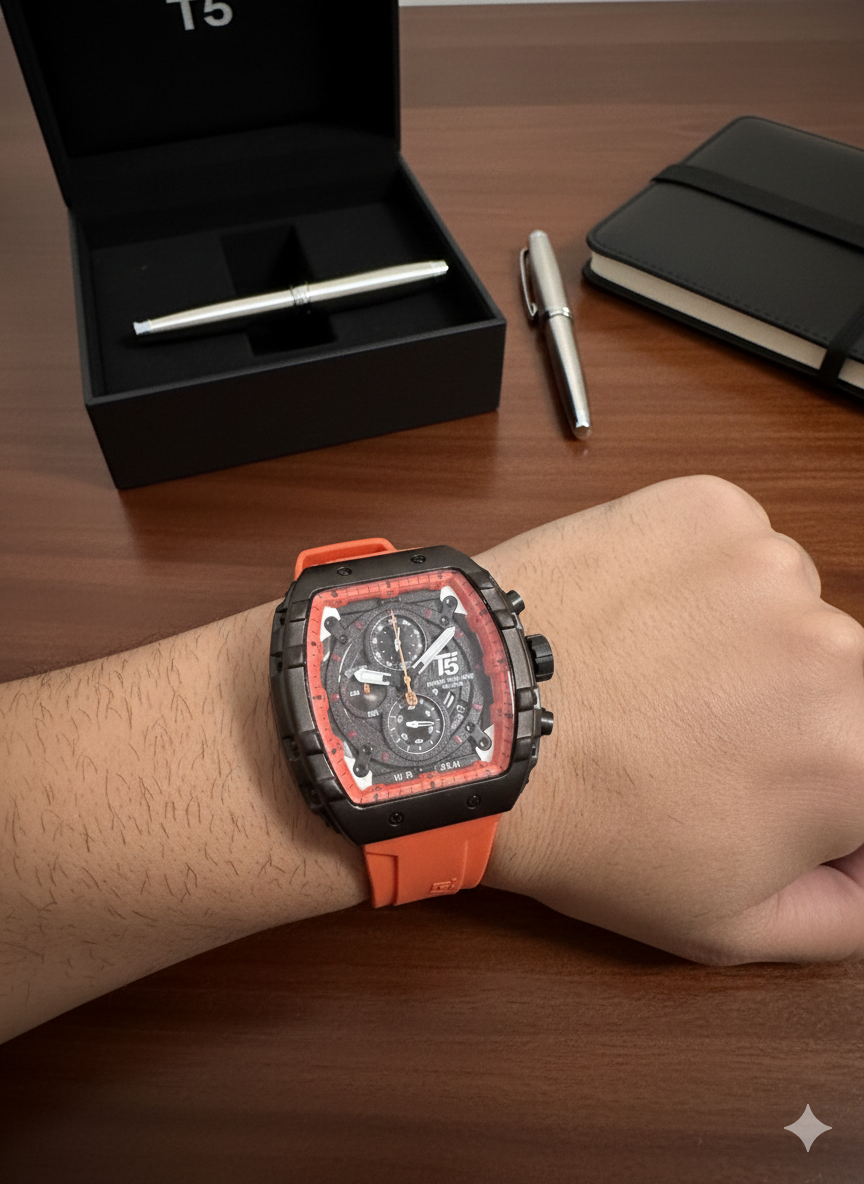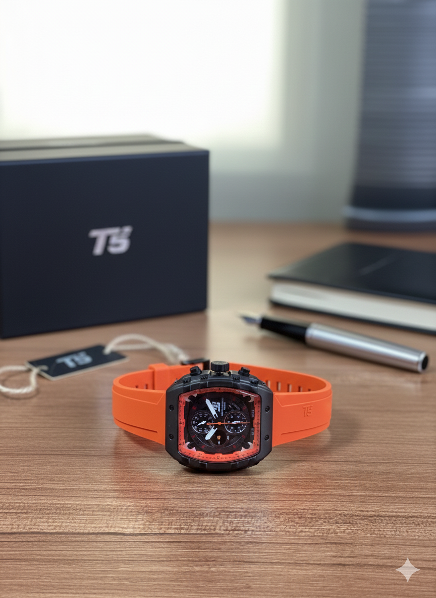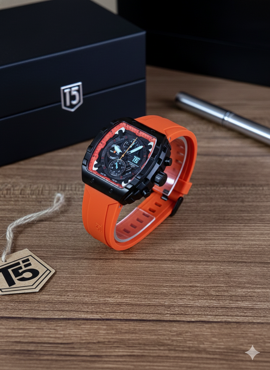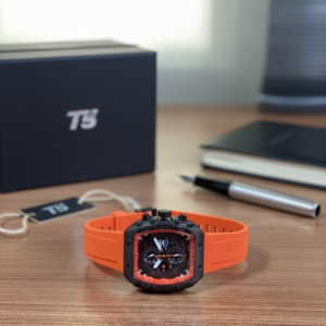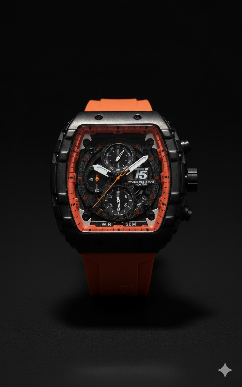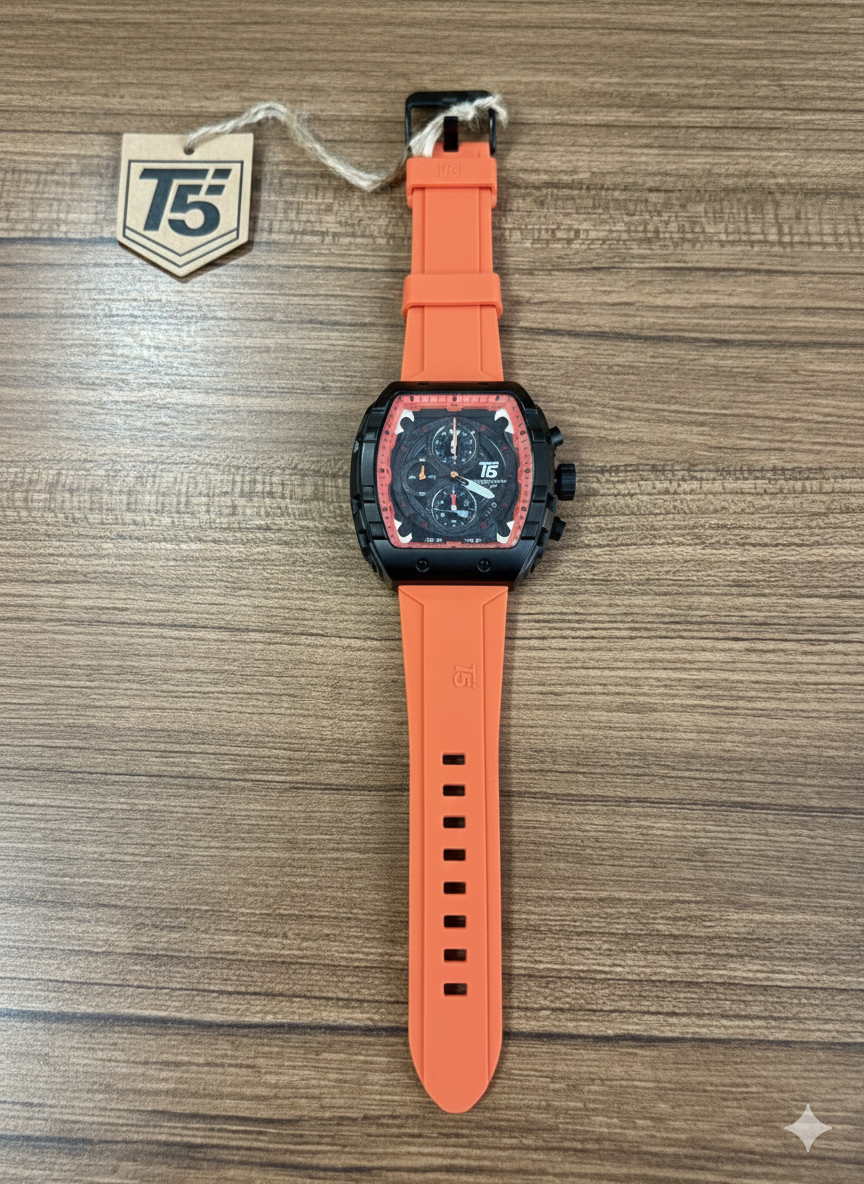 Göz alıcı turuncu silikon kordonu ve mat siyah çelik kasasıyla sınırları zorlayan bir tasarım sunan T5 H3856G-F, cesur ruhunuzu yansıtacak. İster günlük kullanımda ister sportif aktivitelerinizde, bu saat sadece bir zaman göstergesi değil, aynı zamanda karakterinizin güçlü bir imzasıdır.