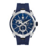 Tamamen siyah kasa ve silikon kayış tasarımı, saate maskülen ve sofistike bir görünüm kazandırırken, silikon kordon uzun süreli kullanımlarda bilek konforunu artırır. Analog kronograf mekanizması, zamanı hassas bir şekilde takip etmenizi sağlar.
